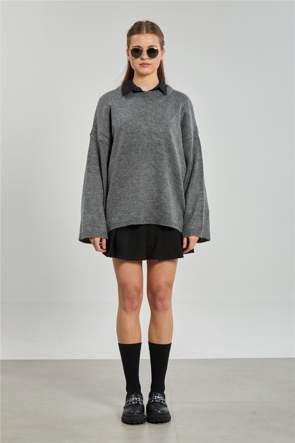 Bisiklet yaka triko kazak-4091 - Orta Gri