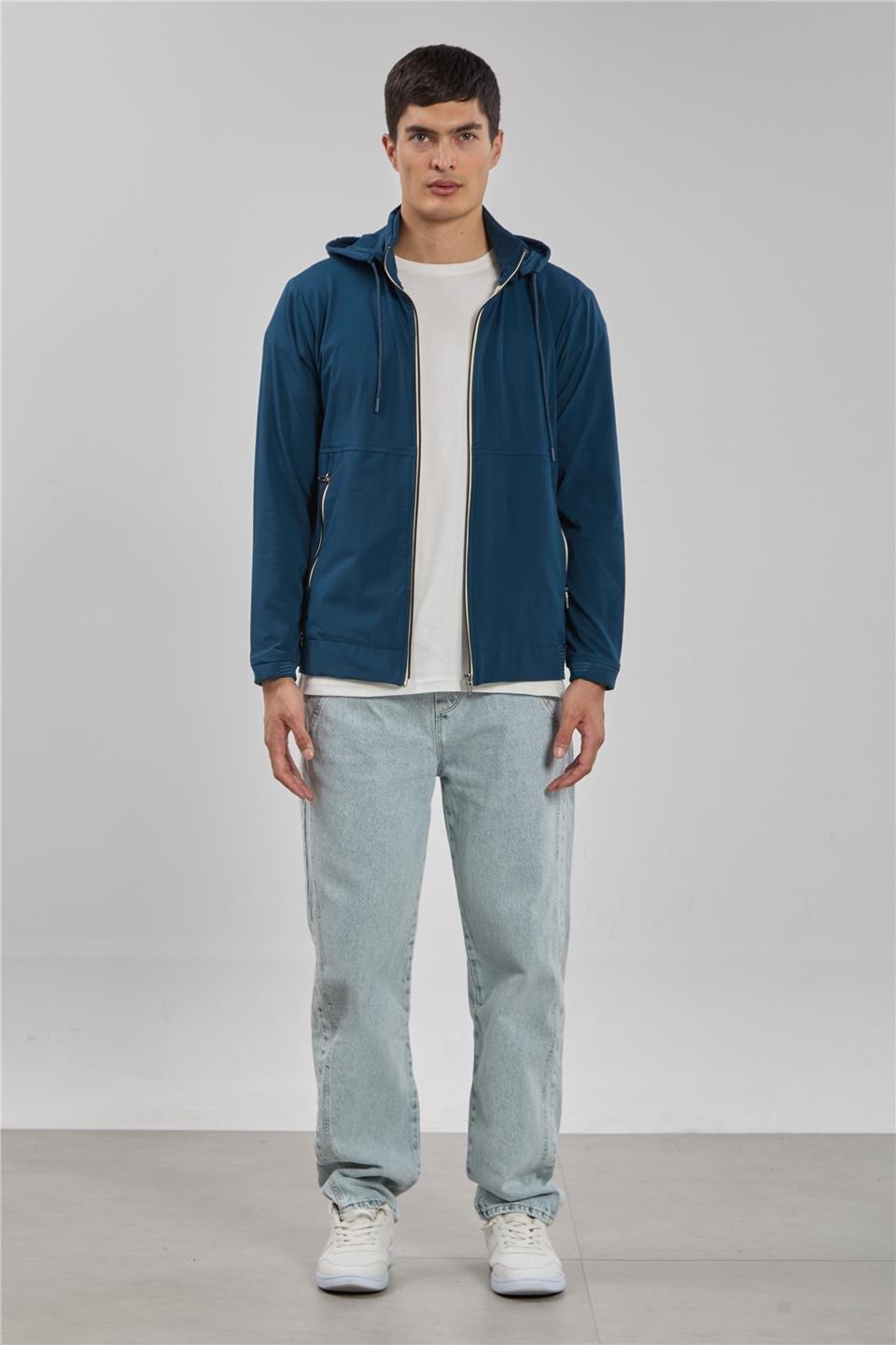 Kapüşonlu fermuarlı ceket-2897 - Petrol