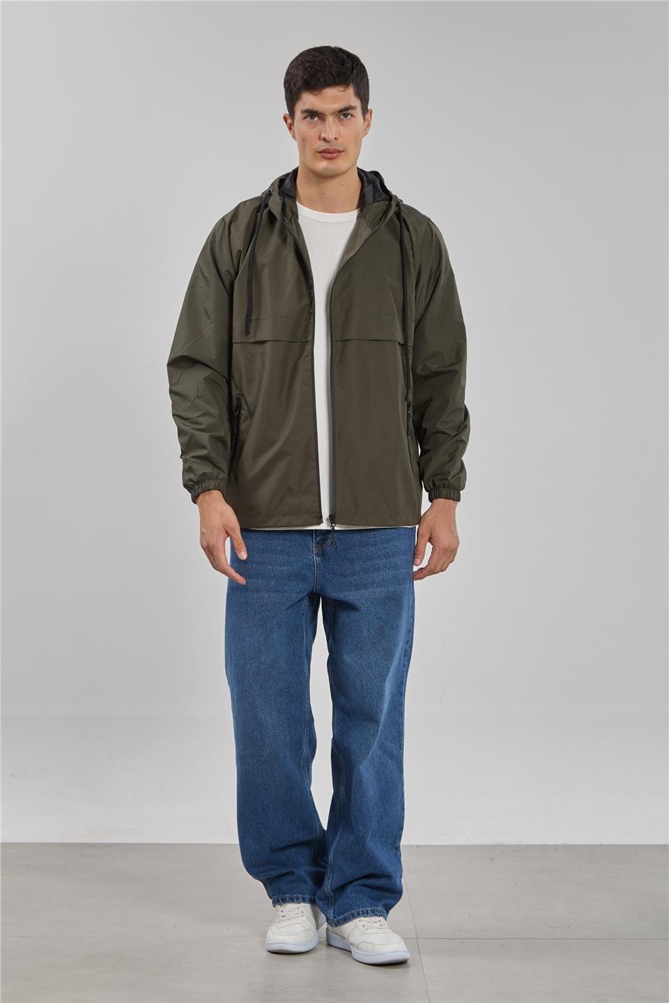Kapüşonlu teknik mont-3438 - Açık Haki