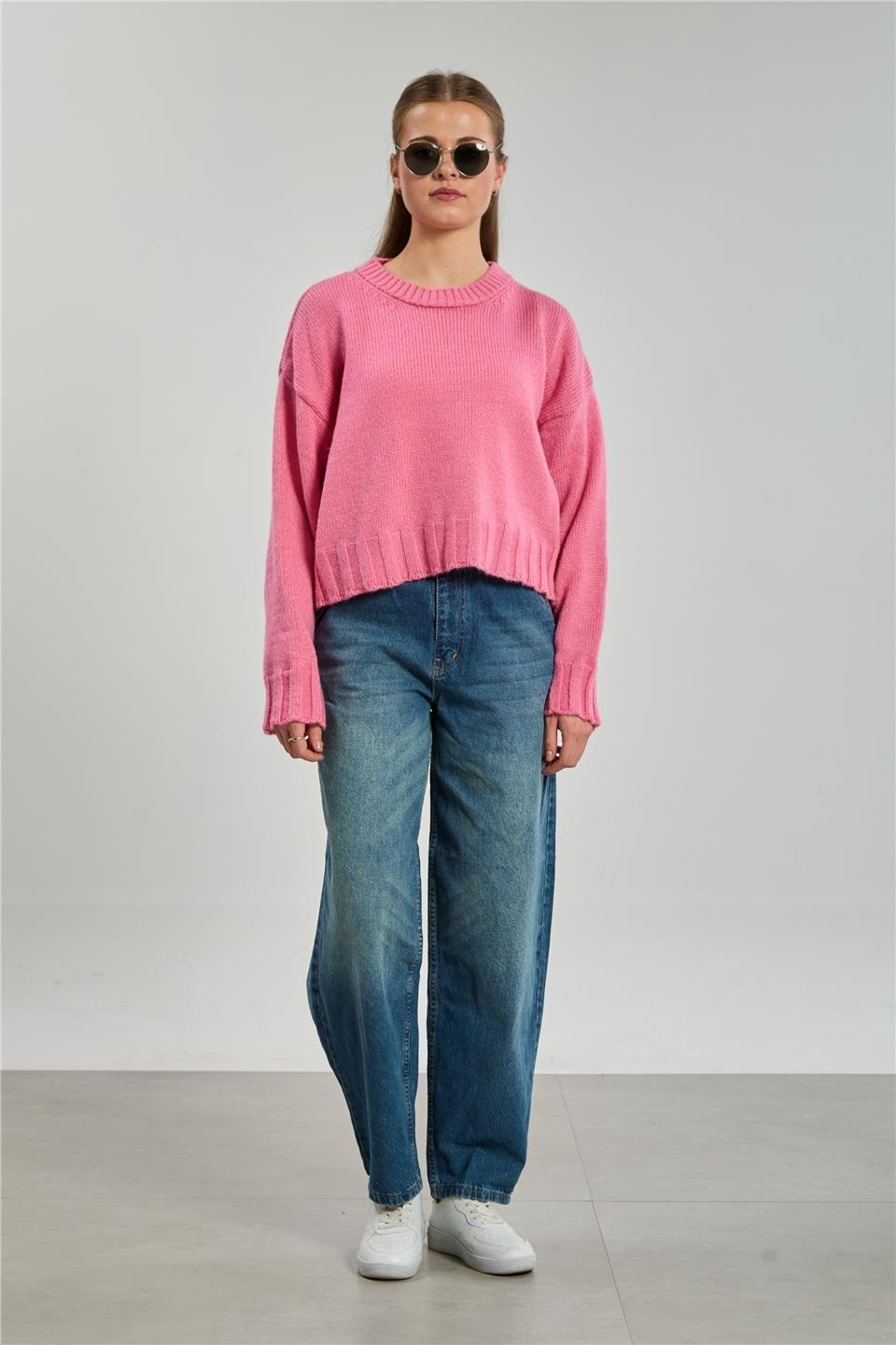 Uzun kollu triko kazak-1897 - Şeker Pembe