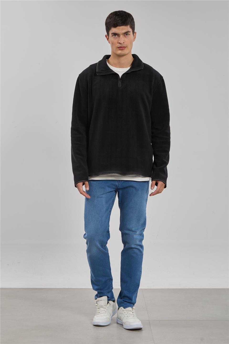 Yarım fermuarlı polar sweatshirt-130 - Siyah